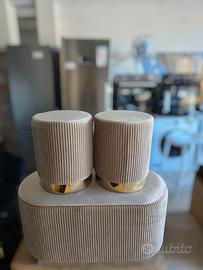 Vendo coppia di pouf imbottiti in velluto a coste, color beige chiaro con elegante base dorata.