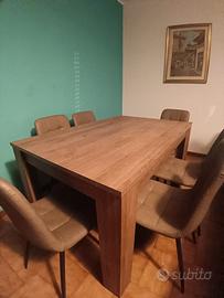 Vendo per trasloco bellissimo set da pranzo acquistato solo un anno fa da Mondo Convenienza. Il set è in buone condizioni. Tavolo Modello Dafne:Finitura effetto rovere cadiz. Linee moderne e solide gambe ad angolo. Misure:Lunghezza 140 cm (allungabile a 190 cm), Larghezza 90 cm. Sedie:6 sedie coordinate imbottite, molto comode e facili da pulire. Il tavolo è perfetto per ospitare fino a 8-10 persone quando allungato. Prezzo:€350 Ritiro:A carico dell'acquirente [Zona Fonte Nuova Torlupara)