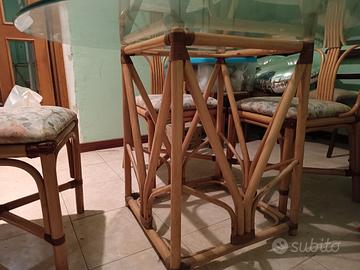 Vendesi splendido set da pranzo vintage in vero midollino e rattan, perfetto per chi ama lo stile Boho Chic, etnico o per arredare con eleganza una veranda, un portico coperto o una sala da pranzo luminosa.
