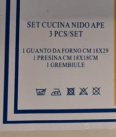 Set completo formato da grembiule con tasca frontale, presina e guanto, cotone in nido d'ape.