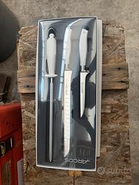 Inoltre, il set è composto da un coltello disossatore con una lama di 130 mm, un coltello jamonero con una lama di 250 mm, e una acciaino in acciaio al carbonio cromato, di 230 mm di lunghezza e 10 mm di diametro. Tutti garantiscono tagli precisi nel prosciutto, grazie al loro eccellente filo.
