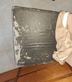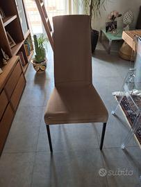 Quattro sedie in ecopelle che tranne per la seduta nella parte bassa un pò rovinata, sono ottime come seduta ed imbottitura, vendute con coprisedia nuovi di coloro rosa/cenere. Spalliera alta ideali per salotti e tavolo da pranzo, telaio in acciaio nero. Possono essere ritirate in zona Castellaneta.
