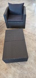 Vendo Set relax con divano 3 posti 2 poltrone e tavolino in polyrattan nero con cuscini usato