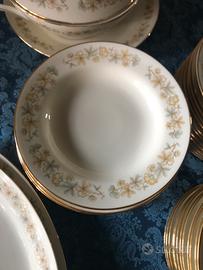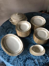 Questo magnifico servizio Richard Ginori degli anni '60 per 12 persone è la quintessenza dell'eleganza. Porcellana finissima con decoro sui toni del beige/verde delicato e bordo in oro.