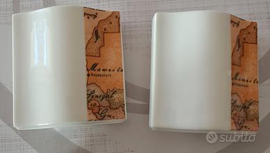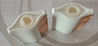 Set di saliera e pepiera in ceramica Alviero Martini. I fori sulla parte superiore (tre per la saliera, due per la pepiera) permettono di distinguere i due contenitori.