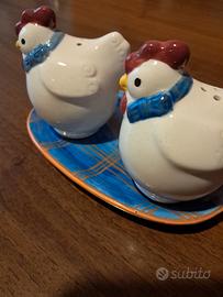 set sale e pepe composto da 3 pezzi in ceramica smaltata mai usato