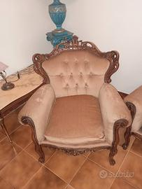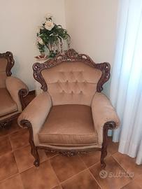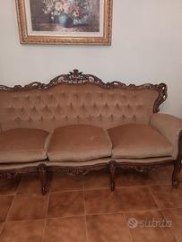 Set Salotto Barocco in Velluto e Legno Intagliat
