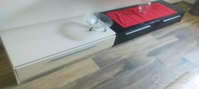 Vendo elegante set da salotto completo in stile moderno, composto da mobili bassi con cassetti, mensole e pensili alti. Il design è contemporaneo con finitura bianco e nero, ideale per arredare il soggiorno con stile e funzionalità. Perfetto per TV e zona living, offre ampio spazio per organizzare oggetti, libri e decorazioni. Composizione: Mobile basso porta TV con cassetti Pensili alti sospesi Mensole da parete Elementi coordinati bianco/nero Caratteristiche: Stile moderno Colori: bianco e nero lucido Misure lunghezza: 300 cm