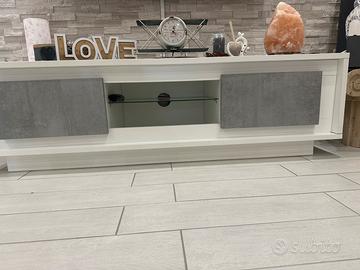 Vendo set da salotto composto da Madia mobile tv in bianco e grigio specchio da abinare sopra la madia con conice lavorata