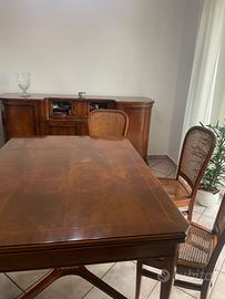 legno massello, composto da tavolo e sedie con seduta intrecciata