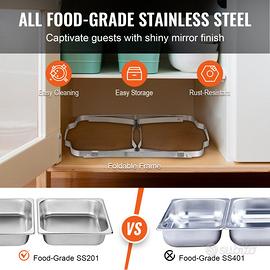 Set Scaldavivande 4 Pz in Acciaio Inox per Buffet Vassoi Sostituibili 7,5L Caldo & Fresco: i piatti scaldavivande di VEVOR da 4 pezzi consentono di mantenere le temperature di tutti i cibi cucinati. Supportato da portacombustibile, il piatto può riscaldare vari cibi mantenendone il gusto fresco. Inoltre, puoi anche aggiungere del ghiaccio nella vaschetta dell'acqua per mantenere freschi i cibi.