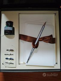 Bellissimo set di scrittura André Denis Scriptum silver. Completo di pennini, inchiostro e buste da lettera.