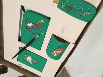 Completo per scrivania in tessuto dipinto a mano. Nella sua scatola NUOVO! Misura 40 per 28.