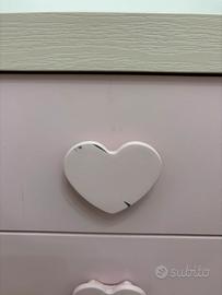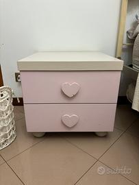 •Comodino con 2 cassetti e maniglie a cuore