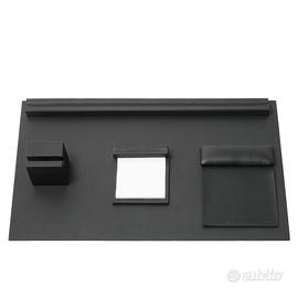 Il set da scrivania HUGO BOSS ha una consistenza morbida e granulosa ed è composto da un sottomano, un supporto per iPhone/iPad che nasconde il cavo di ricarica, un morbido tappetino per il mouse e un supporto per notebook A6. Le dimensioni sono le seguenti: sottomano da scrivania: 62 x 48 cm, supporto per iPhone: 8 x 8 x 5 cm, supporto per laptop: 16,5 x 12,5 cm, tappetino per mouse: 24,5 x 16,5 cm Nuovo con scatola.
