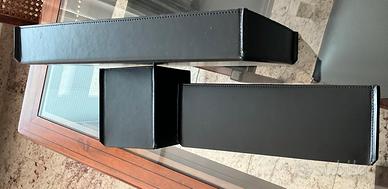 É composto da svotatasche (33×23cm), portadocumenti (17×9cm), portapenne (11×11cm) + cestino per la carta (diametro 25cm) il tutto in perfette condizioni.