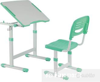 FD FunDesk Piccolino II Green è un moderno set di mobili per bambini che crescono insieme al bambino grazie al meccanismo di altezza.