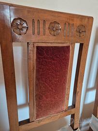 Set sedie in legno e velluto bordeaux in stile Art Decó primi '900,schienale con decorazione intersio e pannello in velluto,seduta in velluto.