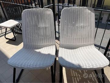 set di due comode poltrone con trama in rattan colore bianco in plastica/acciaio. ritiro a carico dell’acquirente.