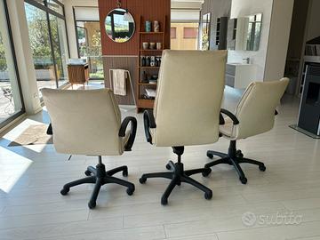 Come da foto vendo set n.3 sedie da ufficio composto nel seguenti modo: - 1 poltrona direzionale in pelle bianca - 2 poltrona visitatore in pelle bianca Le poltrone presentano segni di usura come si vede in foto. Prezzo set 3 sedie €100,00 Per qualsiasi informazione non esitate a contattarmi.