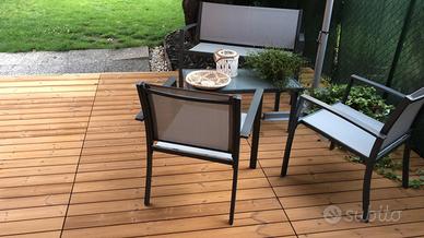 Vendo per trasloco un set da due sedie + doppia seduta con tavolino e tenda. Ottime condizioni, nessun segno di usura. L’unica pecca è che la tenda dell’ombrellone l’ho buttata perché era sporca (ma si trova online).