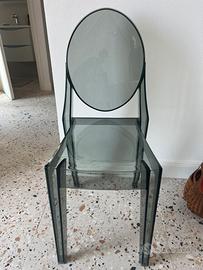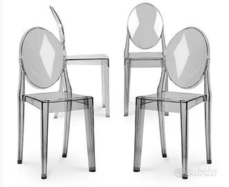 Vendo set di 4 sedie colore grigio trasparente. Realizzate in policarbonato, leggere ma molto resistenti e stabili. Adatte sia per interno che esterno. Buone condizioni. Prezzo: 290 Ritiro a mano.