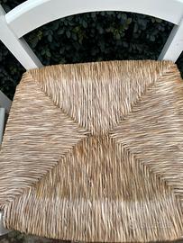 Set di 4 sedie Legno e paglia Solide e ben tenute Colore bianco con seduta in paglia Euro 28 cadauna Ritiro sul posto