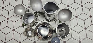 Vendo set servizio caffè Prandelli in acciaio come in foto nuovo mai usato, adatto anche per piano induzione.