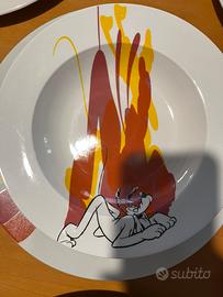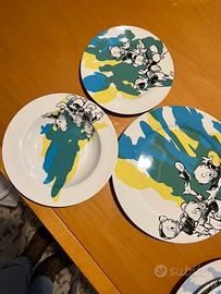 Servizio di piatti della disney originale, composto da 6 coperti da 3 piatti ciascuno (piatto fondo, piatto piano grande e piatto piano piccolo da frutta) per un totale di 18 piatti.