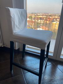 Vendo set di 5 sgabelli alti 92cm con schienale, 65cm dalla seduta, ideali per isola cucina, penisola o bancone bar. Gli sgabelli sono robusti, con struttura scura in legno wenge e poggiapiedi rinforzato in metallo per la massima stabilità. Includo nel prezzo le fodere bianche rimovibili (come da foto), lavabili in lavatrice e perfette per proteggere la seduta o cambiare look all'ambiente. Prezzo trattabile. Non spedisco, ritiro a mano
