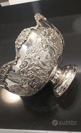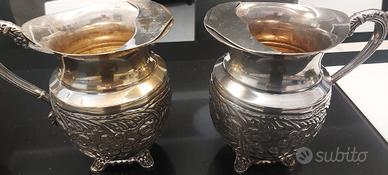 Set argento Sheffield, vassoio cm. 70x40 - due caraffe altezza 20 cm. diametro 15 cm. - fruttiera a coppa 35 cm diametro e alta 25 cm., tutto in ottimo stato senza ammaccature, pagamento anche paypall.