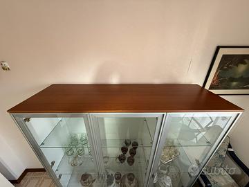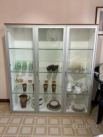I mobili presentano finiture di qualità e sono stati mantenuti con molta cura. I prezzi per i singoli pezzi sono di 150 euro per la credenza, 150 euro per la vetrina e 80 euro per il tavolo, ma per chi acquista il set completo il prezzo totale è scontato a 350 euro. Il ritiro è a mano e a carico dell'acquirente.