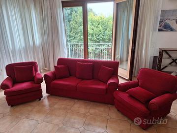 divano+ due poltrone rosse di classe eleganti. tutto a bassano del grappa. prezzo trattabile