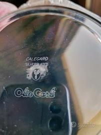 Set composto da 7 pezzi: 6 sottobicchieri e 1 sottobottiglia. Prodotti da Calegaro per Olio Carli. I sottobicchieri sono in Silver Plate (argentati con argento puro 1000%). Set risalente agli anni 80, nuovo, ancora imballato con garanzia e istruzioni per pulizia.