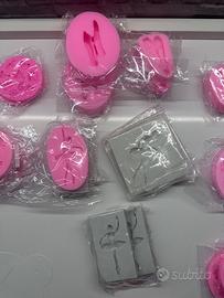 Vendo in blocco oppure singolarmente stampi silicone nuovi per lavorazione pasta di zucchero e cake design