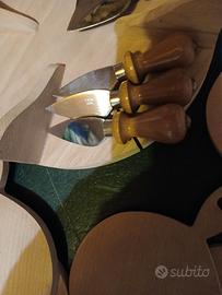 Taglieri in legno e lame dei coltelli inox. Come nuovo poiché usato una volta.