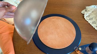 Set da tavola in legno e plastica rigida alimentare di colore blu composto da olio,aceto,sale e pepe.Al set viene aggiunto un porta formaggi o torta della stessa linea.