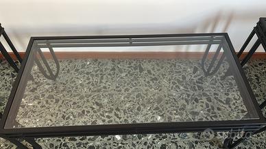 Set di tre tavolini da salotto in vetro temperato e struttura in lega smaltata di colore nero. Tavolino centrale basso 112x56x41 e due tavolini laterali 52x46x54. Disponibili per il ritiro immediatamente.