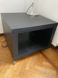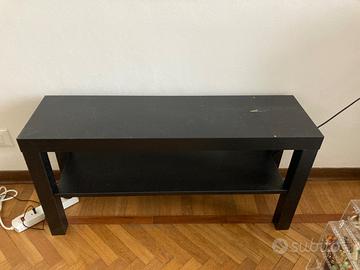 2 tavolini neri IKEA, uno con rotelle. Misure: 21.5 x 21.5 altezza 18 (con rotelle) - ottime condizioni 35x10 altezza 17.5 - (porta TV) lieve graffio (come da foto)