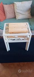Bellissimo set di due tavolini, perfetti per aggiungere un tocco di stile shabby chic alla tua casa. Sono realizzati in metallo bianco e presentano un ripiano in legno. Ideali come tavolini da salotto o comodini.