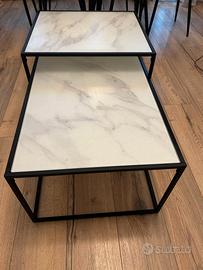 Vendo set 2x tavolini Westwing con struttura in metallo e piano in vetro con effetto marmo. Misure: Tavolino superiore: 50x55x43 Tavolino inferiore: 100x50x35