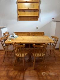 Vendo set Tavolo da 6 sedute comprensivo di 4 Sedie, e 3 Panche con contenitore all'interno Dimensioni Tavolo: 160x80 Dimensioni Panca Grande: 110 x 45 Dimensioni Panche Piccole: 80x50