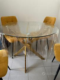 •Tavolo rotondo in vetro con elegante base color oro