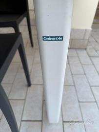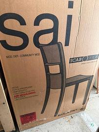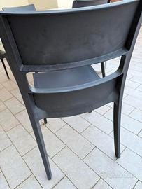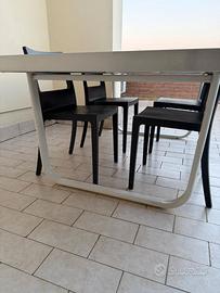 Tavolo e 6 sedie dal design semplice e moderno. Le sedie, colore grigio, sono realizzate in polipropilene rinforzato con fibra di vetro, resistenti e pratiche, con struttura a 4 gambe marca SCAB Design modello SAI. Il tavolo, bianco, fisso (non allungabile), è di marca Chateau d’Ax. Tutti gli elementi sono usati e presentano normali segni di usura, ma restano funzionali e pronti all’uso. Possibilità di vendita sia in blocco che separatamente.