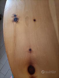 Tavolo rotondo Legno massiccio Pino Cirmolo Stile baita montagna In ottime condizioni, qualche lieve segno Diametro 110 cm 6 sedie perfette seduta in paglia intrecciata Tavolo smontabile