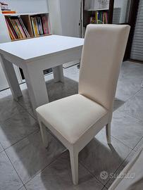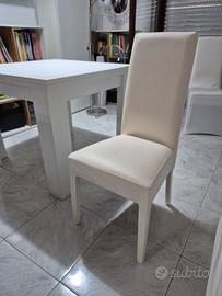 Vendesi set completo composto da tavolo apribile e 4 sedie coordinate, tutto acquistato di recente e mai utilizzato causa trasferimento. I mobili sono in condizioni impeccabili, pari al nuovo. Tavolo: Modello quadrato allungabile, colore bianco con venatura effetto legno. Dimensioni chiuso: 90 x 90 cm. Dimensioni aperto: 180 x 90 cm. Sedie: 4 sedie imbottite rivestite in ecopelle color panna, struttura solida e moderna. Prezzo: 240€ (Si vendono esclusivamente insieme). Prezzo stracciato per realizzo immediato. Condizioni di vendita: Ritiro: A mano a Brindisi al mio domicilio (primo piano). Trasporto: Carico e trasporto a totale carico dell'acquirente.