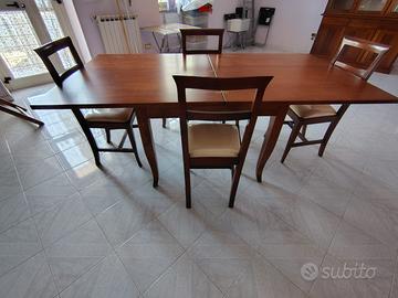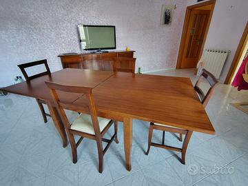 Vendesi set da pranzo coordinato in legno, composto da tavolo quadrato allungabile e 4 sedie abbinate.