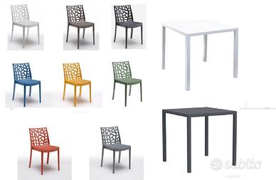 Set tavolo autolivellante realizzabile in qualsiasi misura in lamiera zincata e verniciato a polvere epossidica abbinato a tantissimi modelli di sedia.
