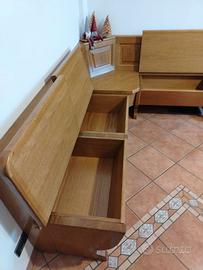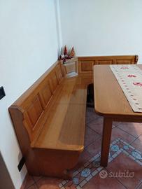 Vendita set tavolo con giropanca angolare in rovere massiccio, per cucina rustica, taverna o baita. Misure tavolo: 90x150cm Misure giropanca: 153x204cm PREZZO DA CONCORDARE. Si valuta anche la vendita separata.
