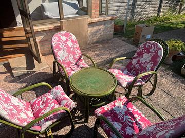 Vendo tavolo piu 4 sedie in vimini da giardino causa inutilizzo.